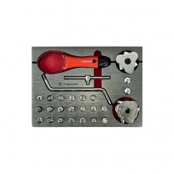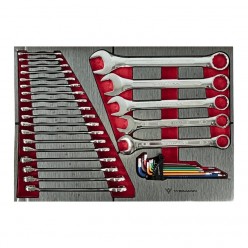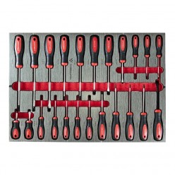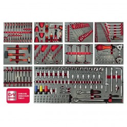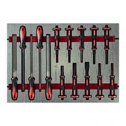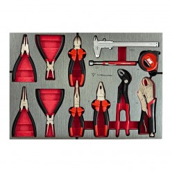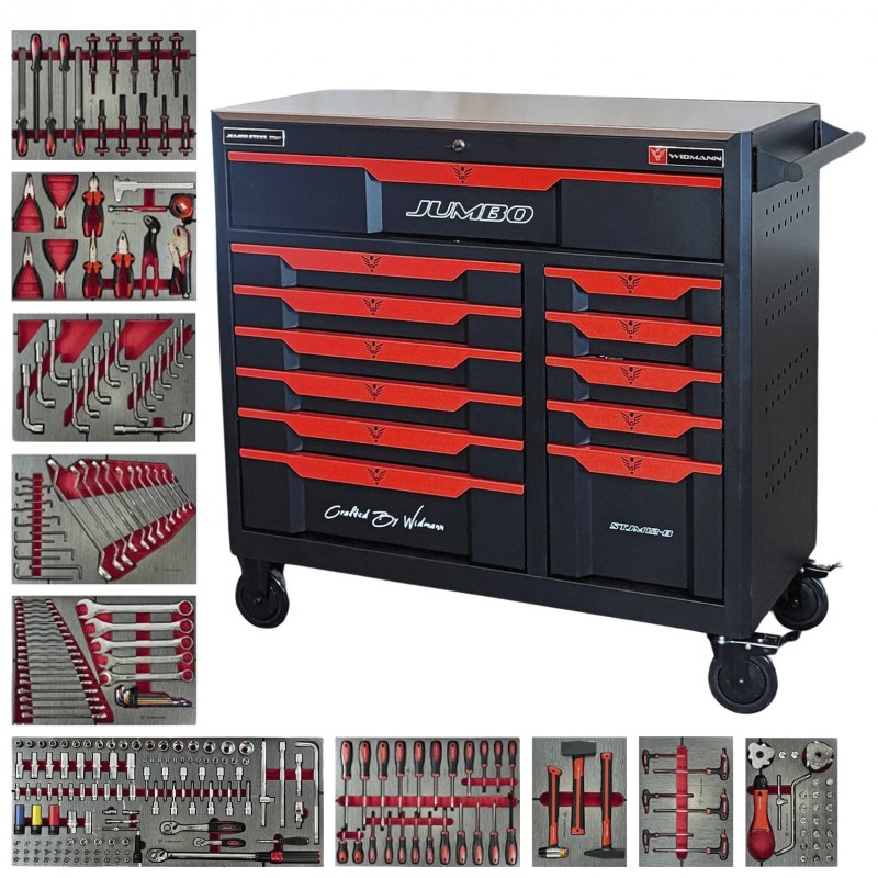 This movable 12-drawer workshop tool trolley for professional mechanics. Made of high-quality steel, the trolley has a robust and durable construction. Thanks to the integrated lock, all the drawers can be locked at once, which prevents the drawers from opening accidentally when the trolley is being moved. The wooden countertop on the tool trolley will be a great spot to keep frequently-used tools within reach. With four swivel castors, two of which have brakes, the trolley can be moved around easily. There is also a convenient side handle for pushing the trolley.