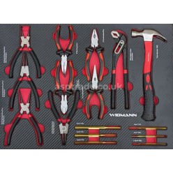 This version of 7 drawer tool chest from Widmann comes with a wide range of high quality tools (wrench sockets, spanners, screwdrivers, pliers and much more). No matter whether for your hobby room, workshop or garage, this tool cabinet is a perfect solution. Thanks to the integrated lock, 7 drawers can be locked at once which prevents the drawers from opening accidentally when the chest is being moved. The robust countertop on the tool trolley will be a great spot to keep frequently used tools within reach. Double panelled walls, body reinforcement and ball-bearing drawer slides for smooth action.