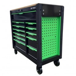 This movable 12-drawer workshop tool trolley. Made of high-quality steel, the trolley has a robust and durable construction. Thanks to the integrated lock, all the 12 drawers can be locked at once, which prevents the drawers from opening accidentally when the trolley is being moved. The robust countertop on the tool trolley will be a great spot to keep frequently-used tools within reach. With four swivel castors, two of which have brakes, the trolley can be moved around easily. There is also a convenient side handle for pushing the trolley.